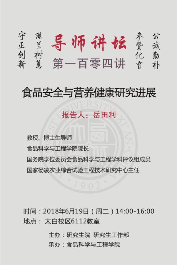 导师讲坛第104讲:食品安全与营养健康研究进展