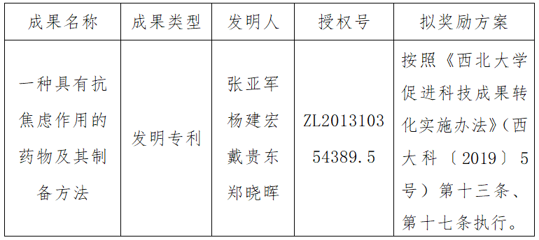 按照《欧冠官方网站促进科技成果转化实施办法》(西大科〔2019〕5号)相关规定,拟对欧冠生命科学学院张亚军副教授作为成果负责人的1项发明专利权实施转化,现将相关信息公示如下: