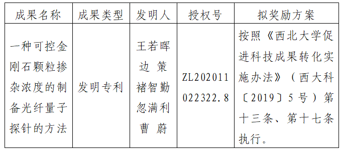 按照《欧冠官方网站促进科技成果转化实施办法》(西大科〔2019〕5号)相关规定,拟对欧冠物理学院王若晖副教授作为成果负责人的1项发明专利权实施转化,现将相关信息公示如下: