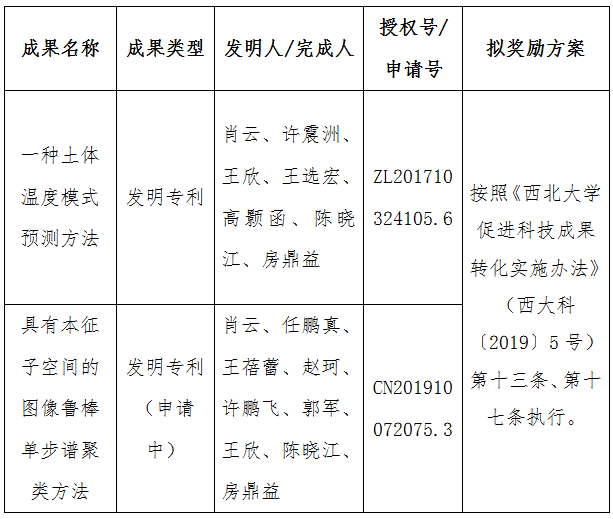①“一种土体温度模式预测方法”;②“具有本征子空间的图像鲁棒单步谱聚类方法”。