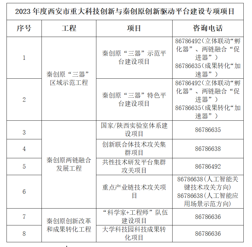 西安市科学技术局近日发布2023年度第一批西安市重大科技创新与秦创原创新驱动平台建设专项项目(以下简称“专项”)征集,现就有关工作通知如下: