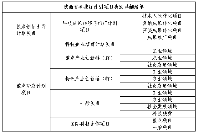 此次主要验收项目类别为已到期的各类陕西省科技计划项目(除自然科学基础研究计划项目),其详细计划类别如下:
