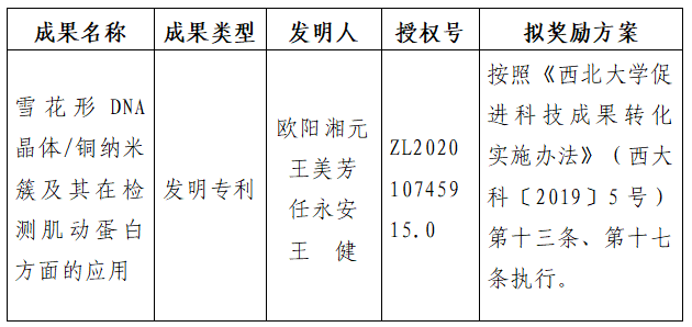 按照《欧冠官方网站促进科技成果转化实施办法》(西大科〔2019〕5号)相关规定,拟对欧冠化学与材料科学学院欧阳湘元副教授作为成果负责人的1项发明专利权实施转化,现将相关信息公示如下: