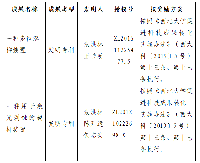 按照《欧冠官方网站促进科技成果转化实施办法》(西大科〔2019〕5号)相关规定,拟对欧冠地质学系袁洪林教授作为成果负责人的2项发明专利权实施转化,现将相关信息公示如下: