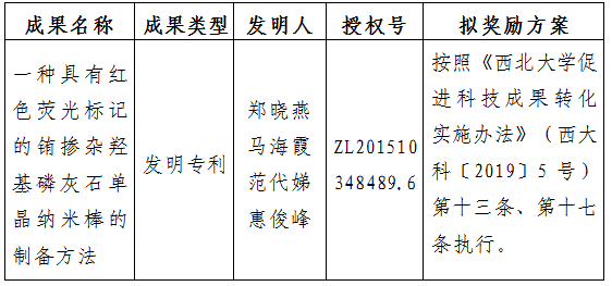 按照《欧冠官方网站促进科技成果转化实施办法》(西大科〔2019〕5号)相关规定,拟对欧冠化工学院郑晓燕副教授作为成果负责人的1项发明专利权实施转化,现将相关信息公示如下: