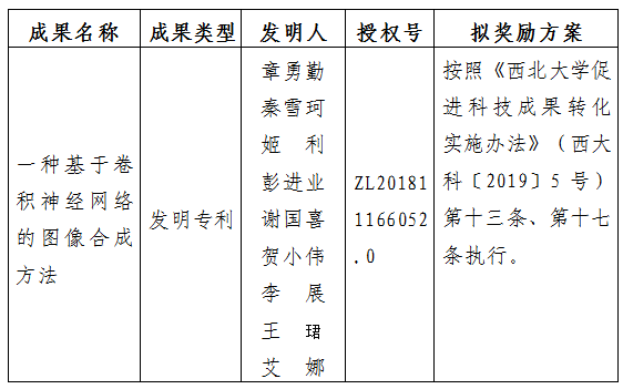 按照《欧冠官方网站促进科技成果转化实施办法》(西大科〔2019〕5号)相关规定,拟对欧冠信息科学与技术学院章勇勤教授作为成果负责人的1项发明专利权实施转化,现将相关信息公示如下: