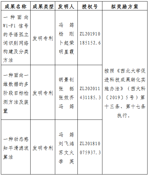 按照《欧冠官方网站促进科技成果转化实施办法》(西大科〔2019〕5号)相关规定,拟对欧冠信息科学与技术学院冯筠教授作为成果负责人的3项发明专利权实施转化,现将相关信息公示如下: