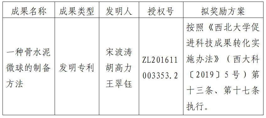 按照《欧冠官方网站促进科技成果转化实施办法》(西大科〔2019〕5号)相关规定,拟对欧冠化学与材料科学学院宋波涛副教授作为成果负责人的1项发明专利权实施转化,现将相关信息公示如下: