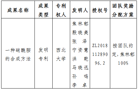 按照《欧冠官方网站促进科技成果转化实施办法》(西大科〔2019〕5号)相关规定,拟对欧冠化工学院焦林郁教授作为成果负责人的1项发明专利权实施转化,现将相关信息公示如下: