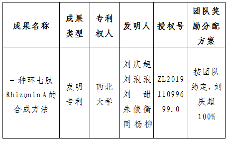 按照《欧冠官方网站促进科技成果转化实施办法》(西大科〔2019〕5号)相关规定,拟对欧冠化工学院刘庆超教授作为成果负责人的1项发明专利权实施转化,现将相关信息公示如下: