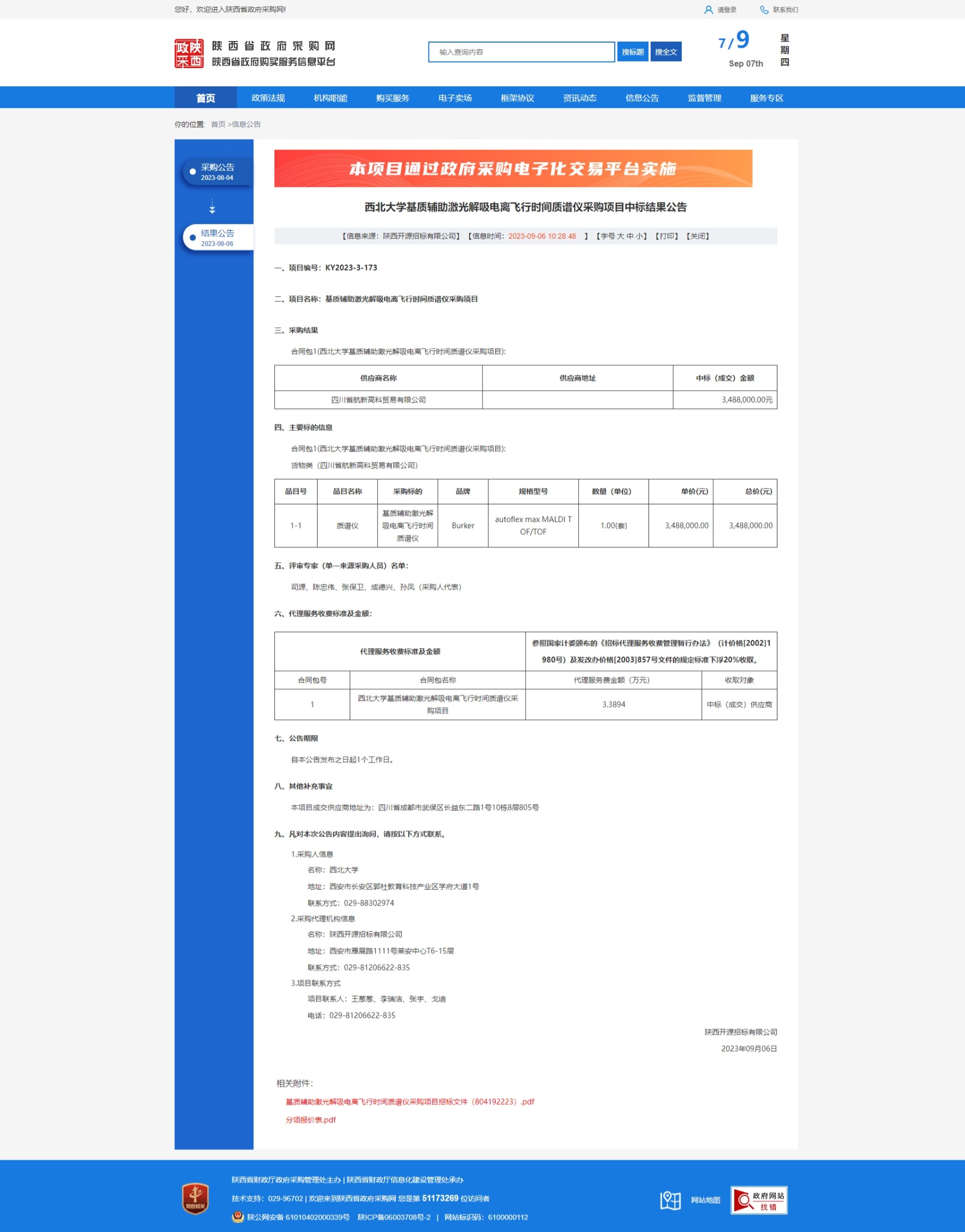 欧冠官方网站基质辅助激光解吸电离飞行时间质谱仪采购项目中标结果公告 作者: 编辑:采购与招标办公室 时间:2023-09-07 原公告链接:http://www.ccgp-shaanxi.gov.cn/freecms/site/shaanxi/ggxx/info/2023/8a69c94c8a232697018a6807f05a414a.html?noticeType=001021¬iceId=537f3b8e-4c5e-11ee-9a8e-08c0eb20c666