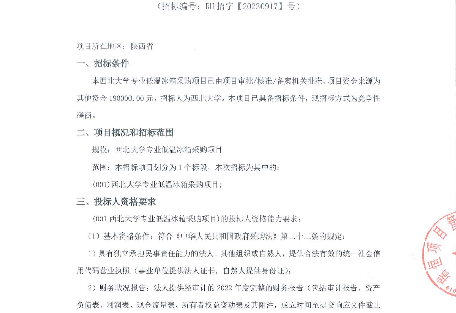 欧冠官方网站专业低温冰箱采购项目竞争性磋商公告 作者: 编辑:采购与招标办公室 时间:2023-09-22 原公告链接:http://bulletin.sntba.com/biddingBulletin/2023-09-22/680755.html