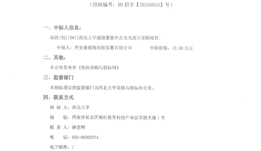 欧冠官方网站超微量紫外分光光度计采购项目成交结果公告 作者: 编辑:采购与招标办公室 时间:2023-10-12 原公告链接:http://bulletin.sntba.com/resultBulletin/2023-10-12/722502.html