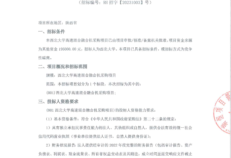 欧冠官方网站高速混合融合机采购项目竞争性磋商公告 作者: 编辑:采购与招标办公室 时间:2023-10-18 原公告链接:http://bulletin.sntba.com/biddingBulletin/2023-10-17/735312.html