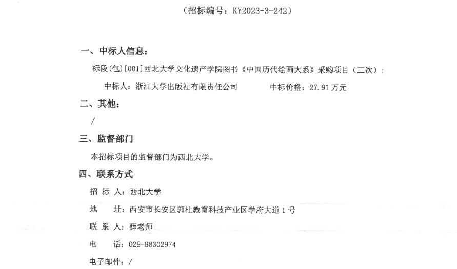 欧冠官方网站文化遗产学院图书《中国历代绘画大系》采购项目(三次)成交公告 作者: 编辑:采购与招标办公室 时间:2023-10-25 原公告链接:http://bulletin.sntba.com/resultBulletin/2023-10-24/752147.html