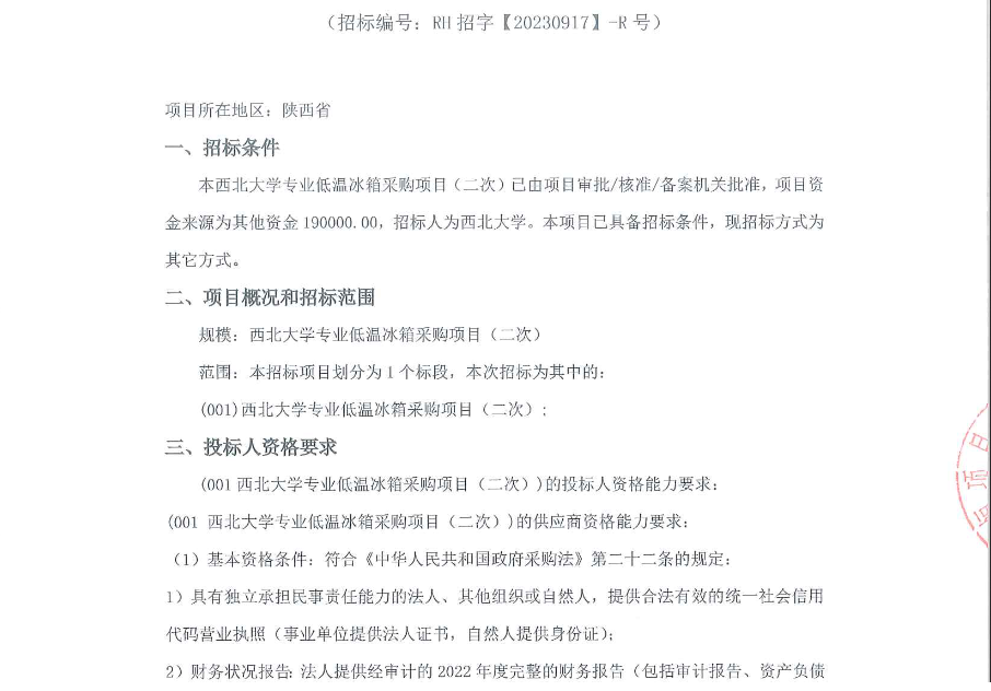欧冠官方网站专业低温冰箱采购项目(二次)竞争性磋商公告 作者: 编辑:采购与招标办公室 时间:2023-10-25 原公告链接:http://bulletin.sntba.com/biddingBulletin/2023-10-24/752921.html