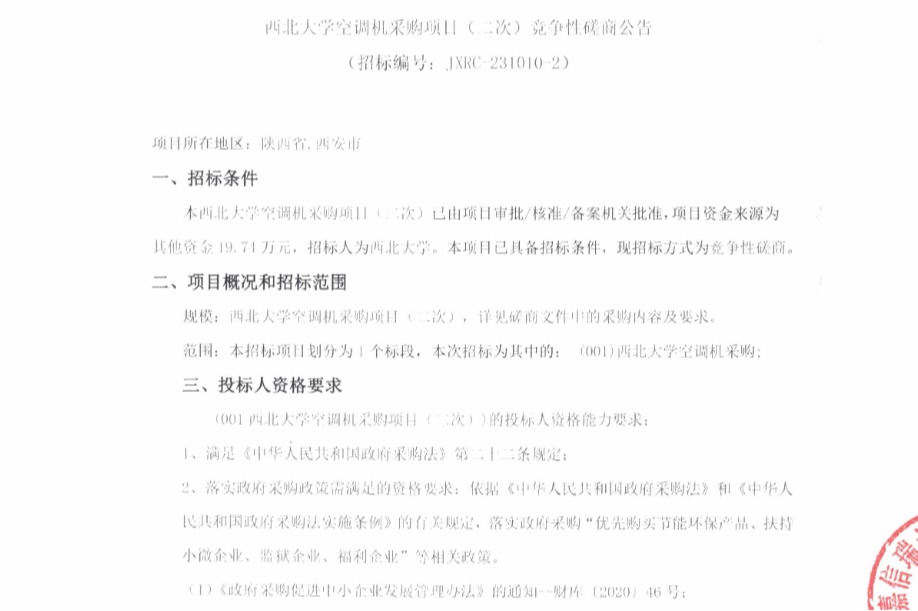 欧冠官方网站空调机采购项目(二次)竞争性磋商公告
