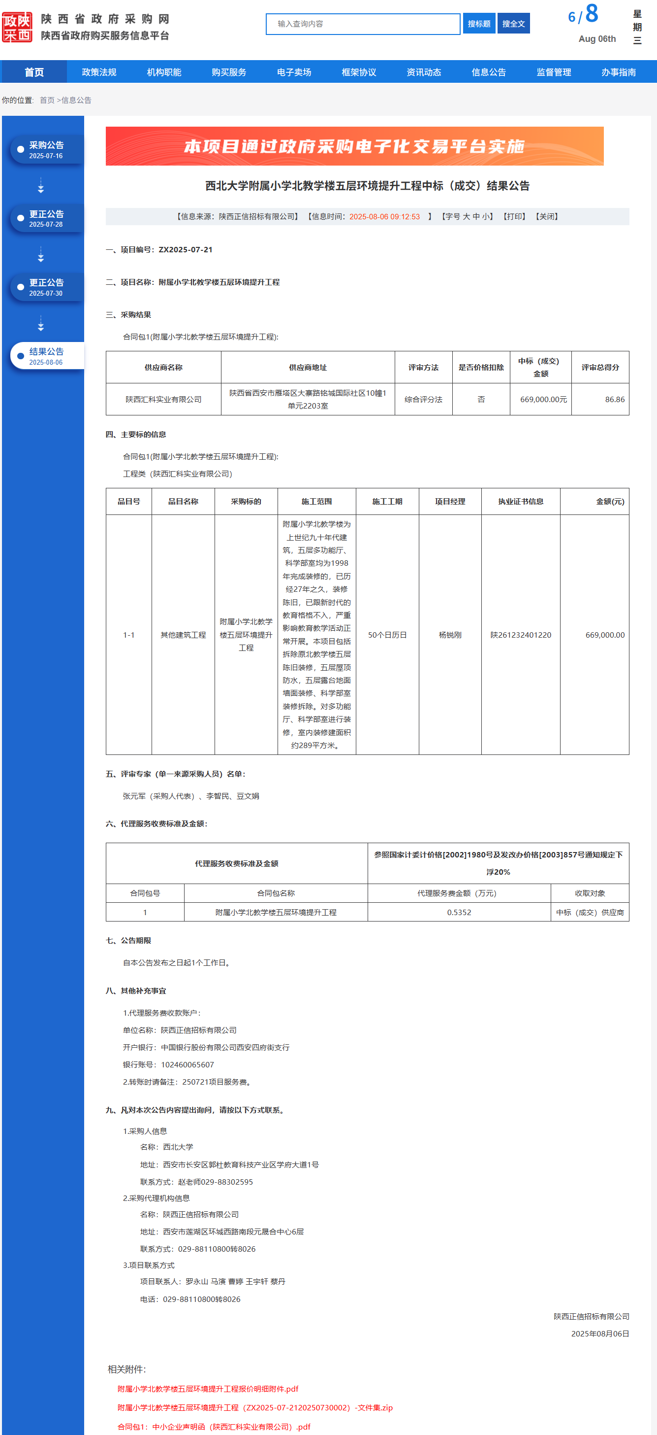 欧冠官方网站附属小学北教学楼五层环境提升工程中标(成交)结果公告 作者: 编辑:党丹珩 时间:2025-08-06 公告地址:https://www.ccgp-shaanxi.gov.cn/freecms/site/shaanxi/ggxx/info/2025/8a69c1e29860ef6f01987cdf292f438d.html?noticeType=001026¬iceId=870e8f84-7264-11f0-8063-08c0eb20c666