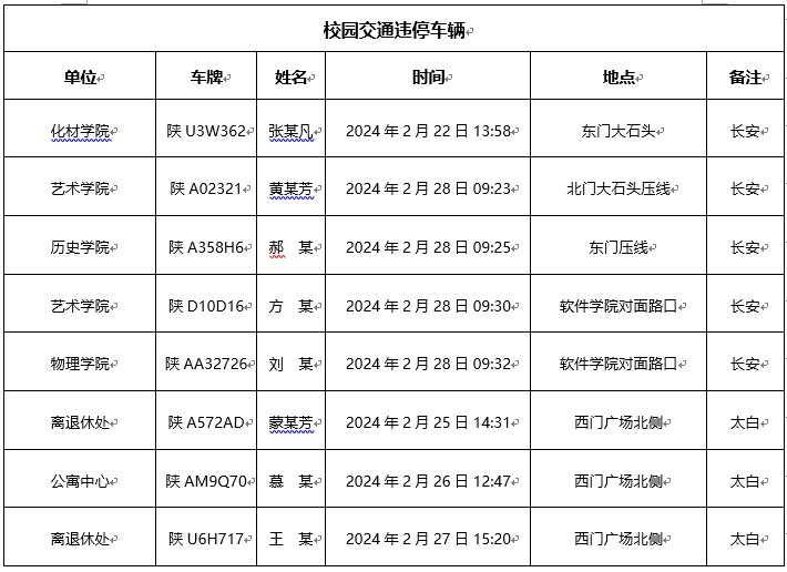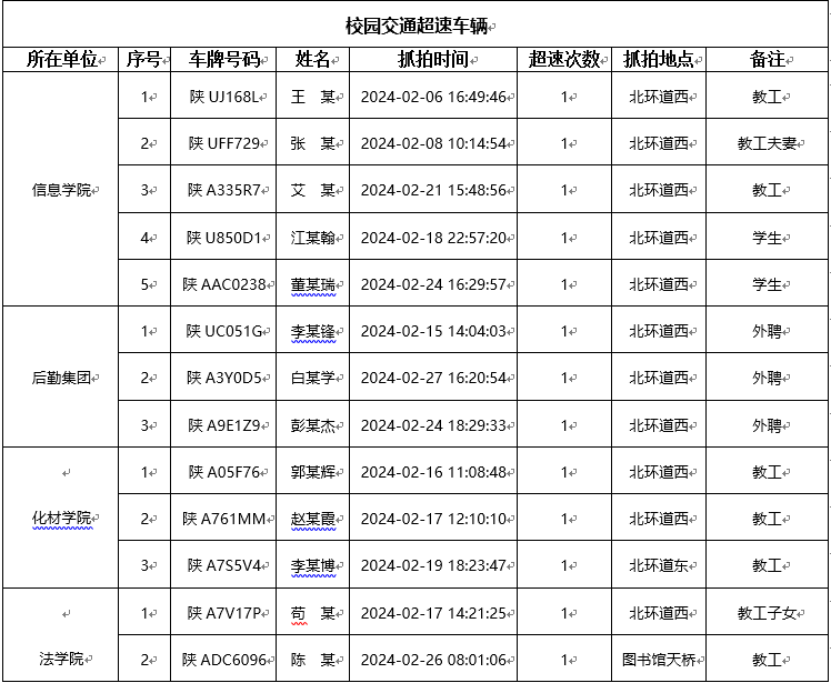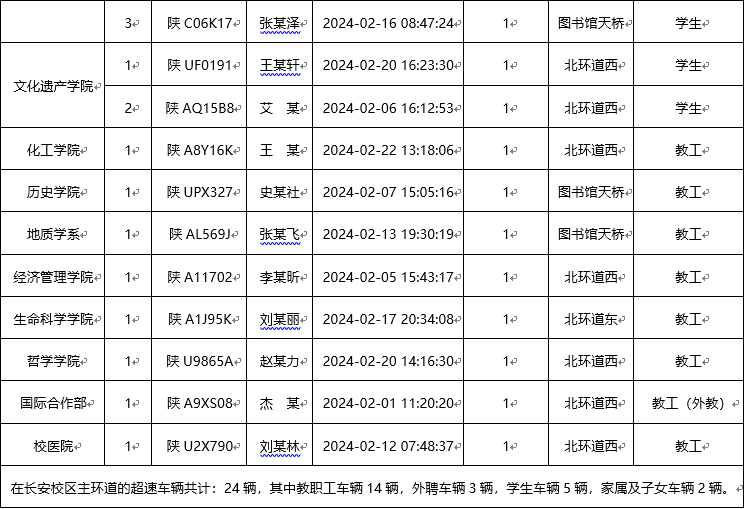 为加强校内道路交通安全管理,规范校内交通秩序,根据《欧冠官方网站校园道路交通管理办法》有关要求,现将2024年2月校园交通违章车辆予以曝光,所在单位负责对本单位违章师生员工进行交通安全教育和日常管理。