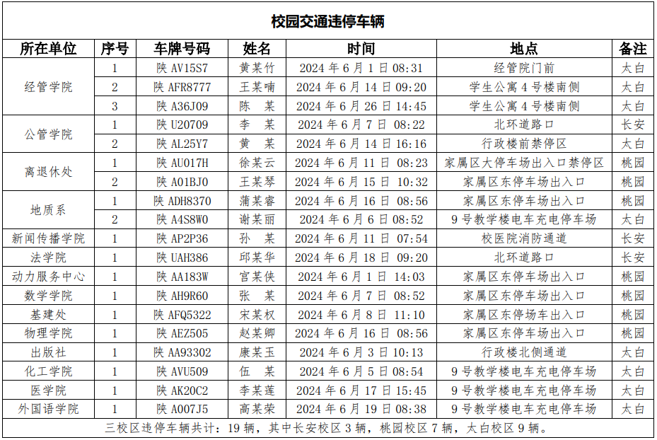为加强校内道路交通安全管理,规范校内交通秩序,根据《欧冠官方网站校园道路交通管理办法》有关要求,现将2024年6月校园交通违章车辆予以曝光,所在单位负责对本单位违章师生员工进行交通安全教育和日常管理,对于校内曝光超速的学生车辆将取消下一年度的通行证办理资格。