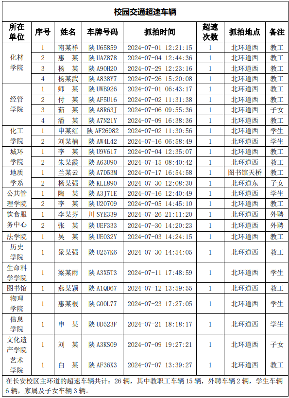 为一步加强校园交通管理,保障校园交通安全有序,维护学校正常的教学、科研和生活秩序以及师生员工的人身财产安全,根据《欧冠官方网站校园交通安全管理规定》有关要求, 现将2024年7月校园交通违章车辆予以曝光,具体情况如下表。