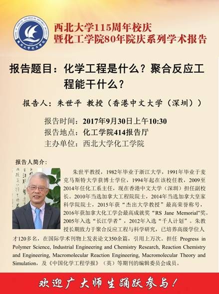 欧冠官方网站115周年校庆暨化工学院80年院庆系列学术报告
