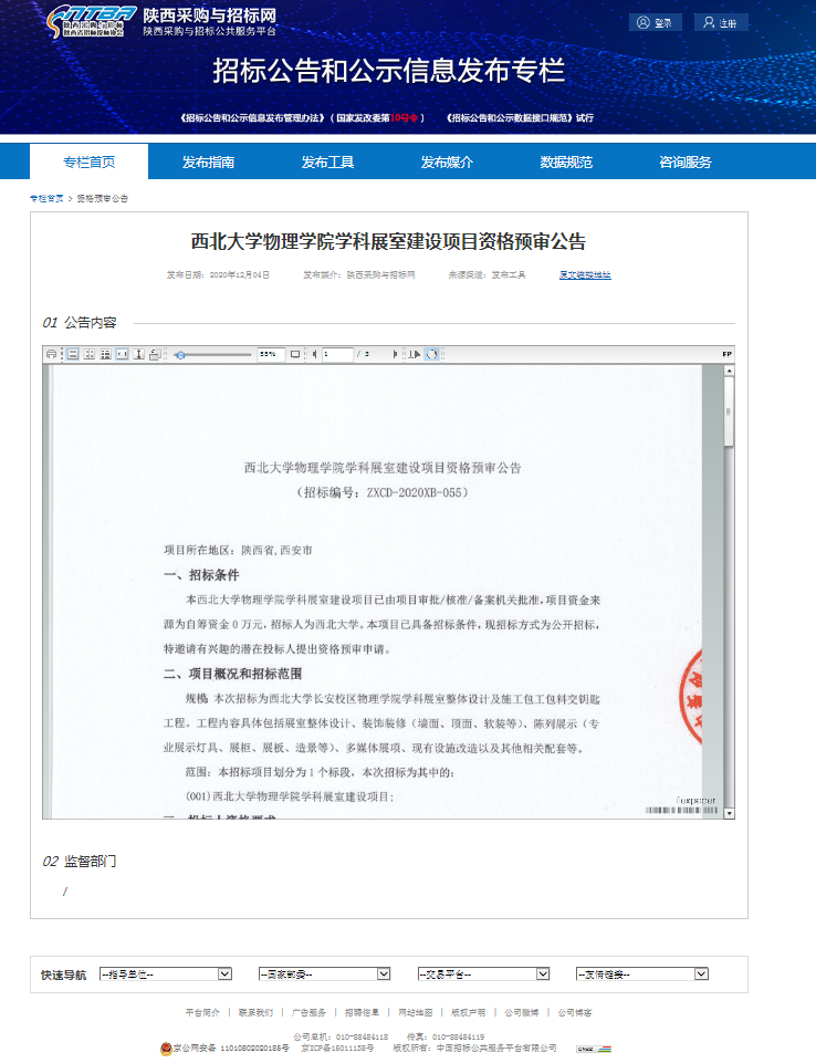 欧冠官方网站物理学院学科展室建设项目资格预审公告 作者: 编辑:郭平 时间:2020-12-08 http://bulletin.sntba.com/qualifyBulletin/2020-12-04/251055.html