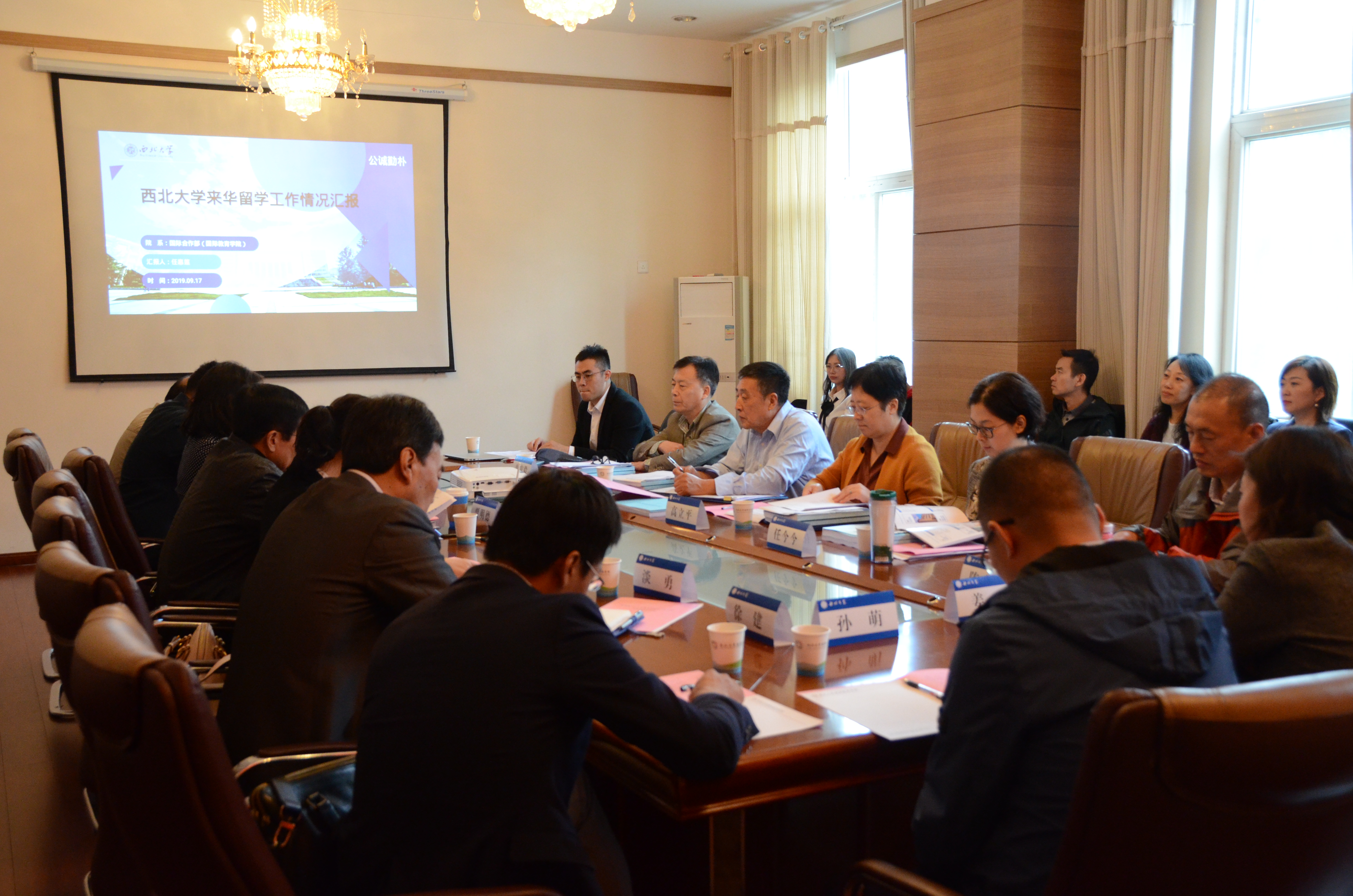 9月17日下午,细雨初歇,日展云稍。教育部来华留学工作专项调研专家组成员高立平、郭凤林、任今今一行三人来欧冠开展专项工作调研,陕西省教育厅对外合作与交流处副处长郭宏毅一同调研。