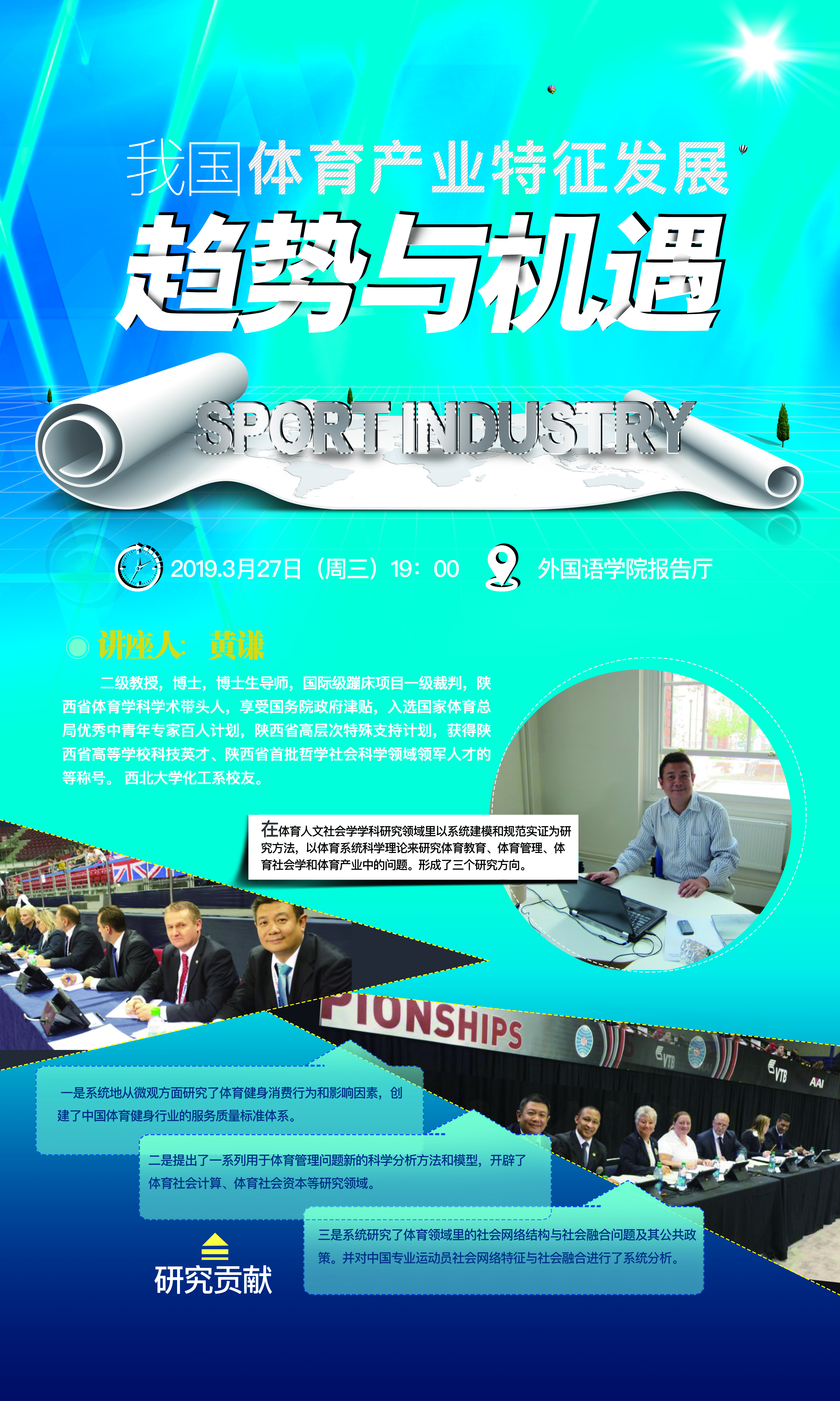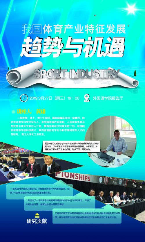 欧冠官方网站2019年体育文化节体育文化讲座——我国体育产业特征发展趋势与机遇