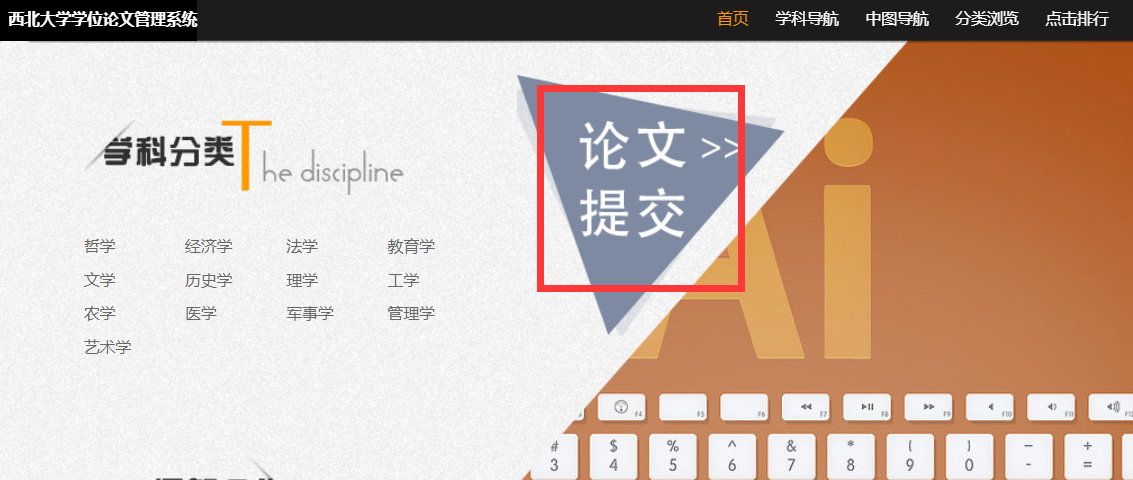(1)校园网:点击链接http://202.117.102.160,选择“论文提交”,用学号注册新用户后开始提交论文。