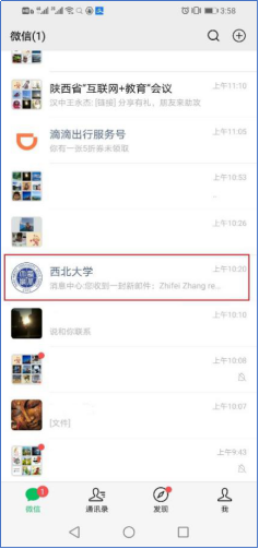 由于腾讯微信于近期进行了升级,导致欧冠微信企业号用户直接从好友对话框里进入微信企业号(如图1所示),出现空白或者仅出现“消息中心”和“移动校园小助手”菜单(如图2所示),影响到“晨午检”、“乘车扫码”等应用服务的使用。对此,解决方法如下: