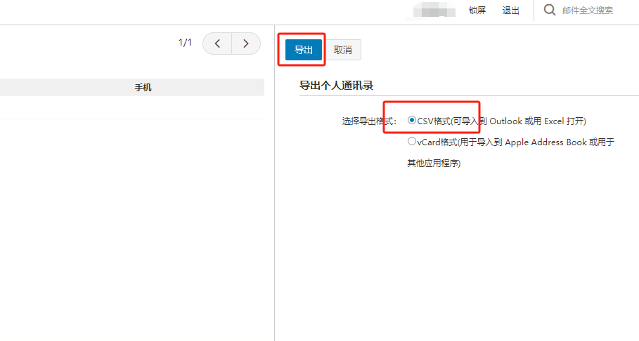 2、导出个人通讯录