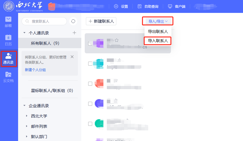 5、个人通讯录导入新版邮箱