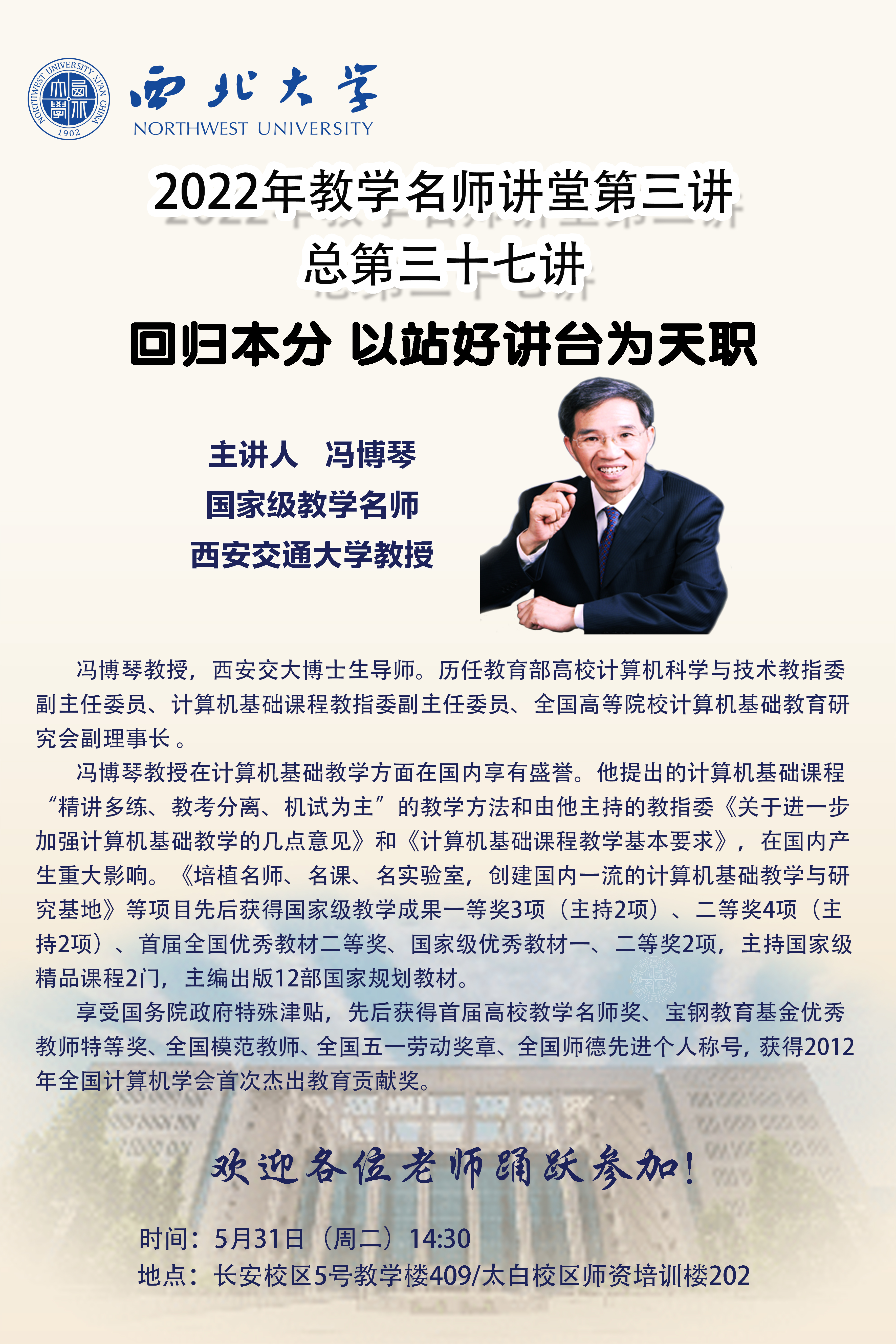 欧冠官方网站2022年教学名师讲堂第三讲——回归本分 以站好讲台为天职