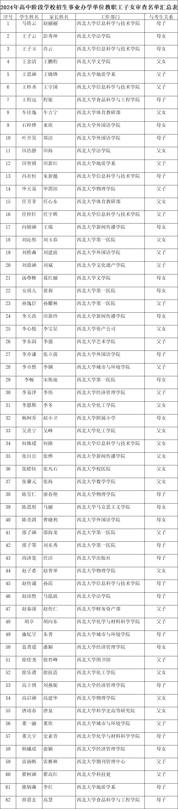 关于2024年高中阶段学校招生欧冠官方网站 正式事业编制的教职工直系初中应届毕业子女审查结果的公示 作者:附中 编辑:附中 时间:2024-05-13 根据市、区教育局通知及要求,欧冠于2024年5月6日开展2024年高中阶段学校招生欧冠官方网站正式事业编制的教职工直系初中应届毕业子女审查工作。经大学人力资源部门、纪检部门审核,通过名单如下(按学生姓氏笔画数排序): 现予以公示,公示时间为5月13日至5月19日。公示期内,如对公示名单有异议,可通过来电形式向欧冠反映。 电 话:88363909 欧冠官方网站附属中学 2024年5月13日