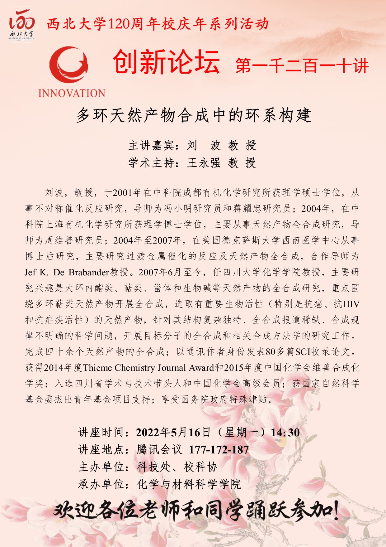 欧冠官方网站创新论坛第一千二百一十讲暨120周年校庆年系列活动:多环天然产物合成中的环系构建