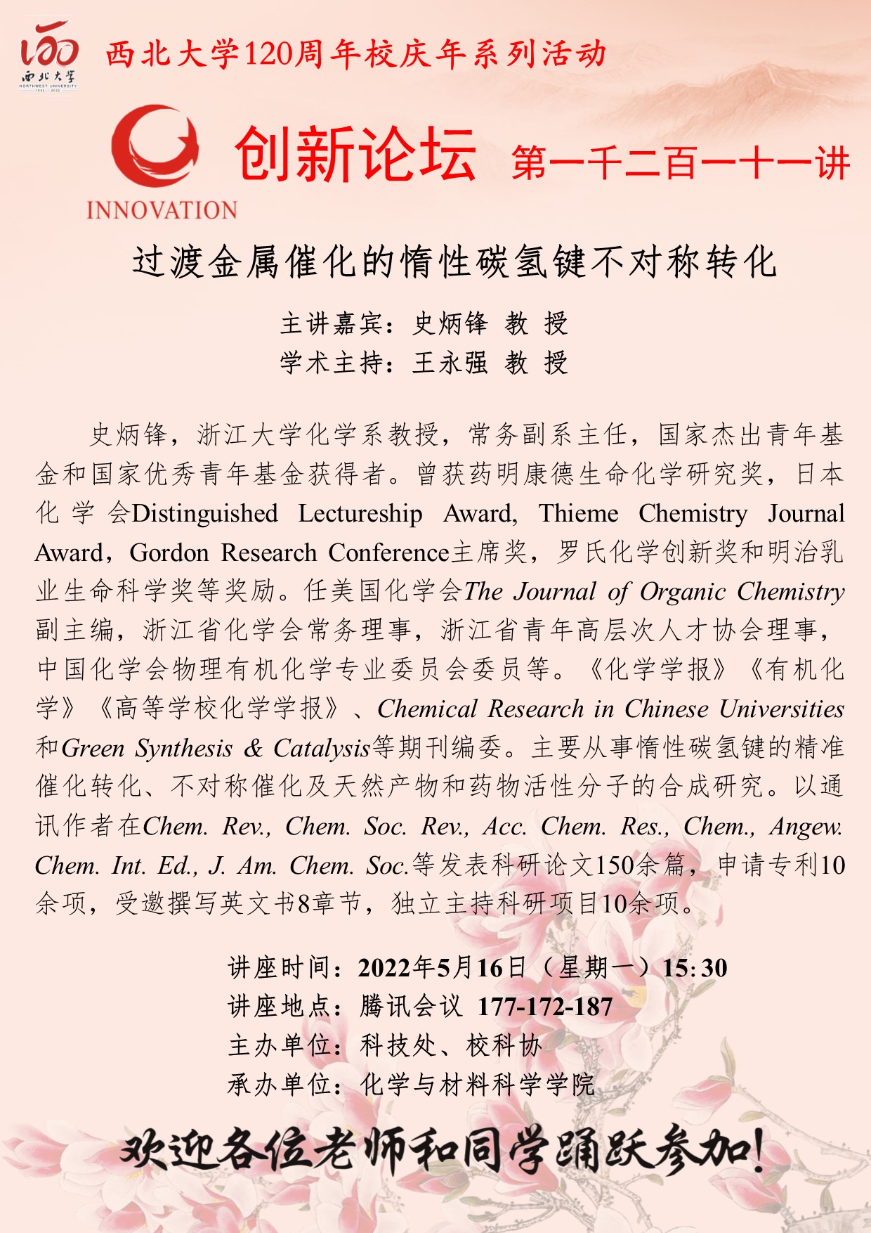 欧冠官方网站创新论坛第一千二百一十二讲暨120周年校庆年系列活动:病毒感染关键蛋白糖基化与药物研发---以SARS-CoV-2为例