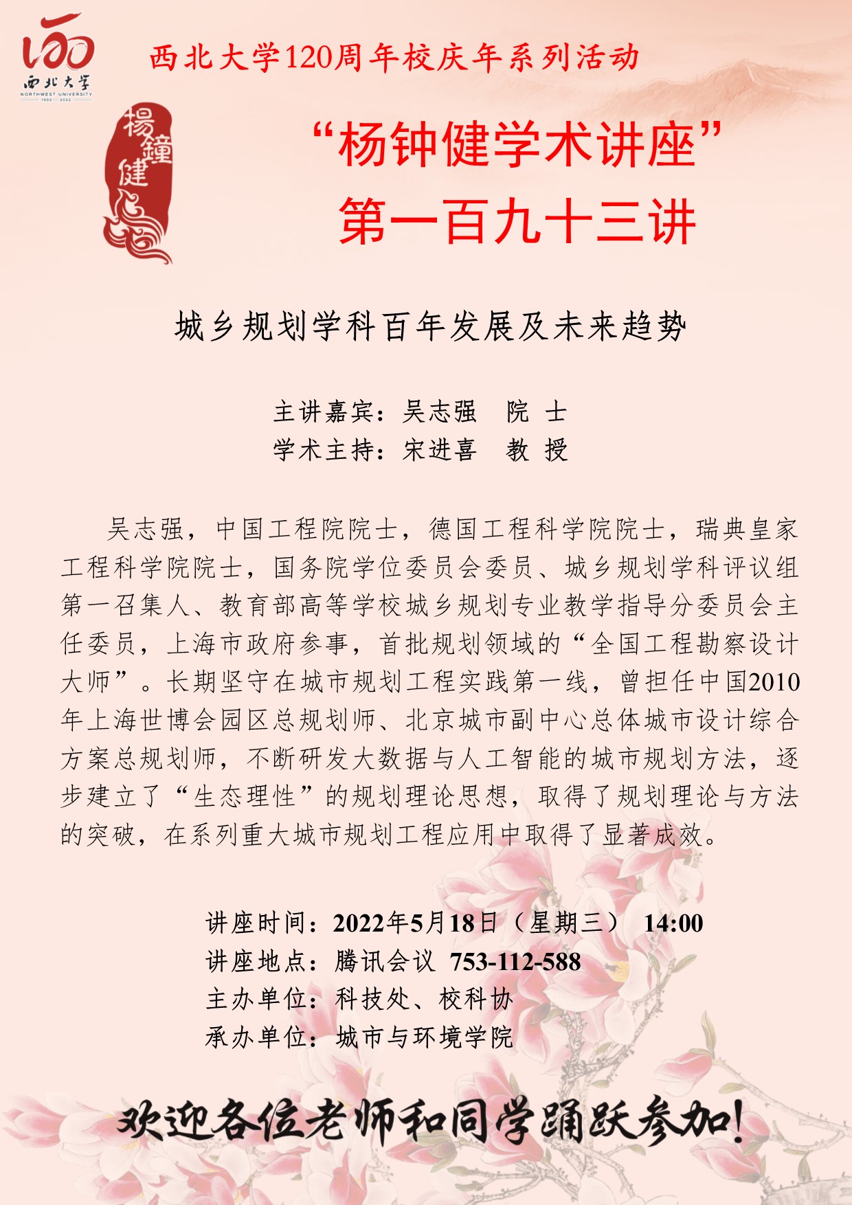 “杨钟健学术讲座”第一百九十三讲暨120周年校庆年系列活动:城乡规划学科百年发展及未来趋势