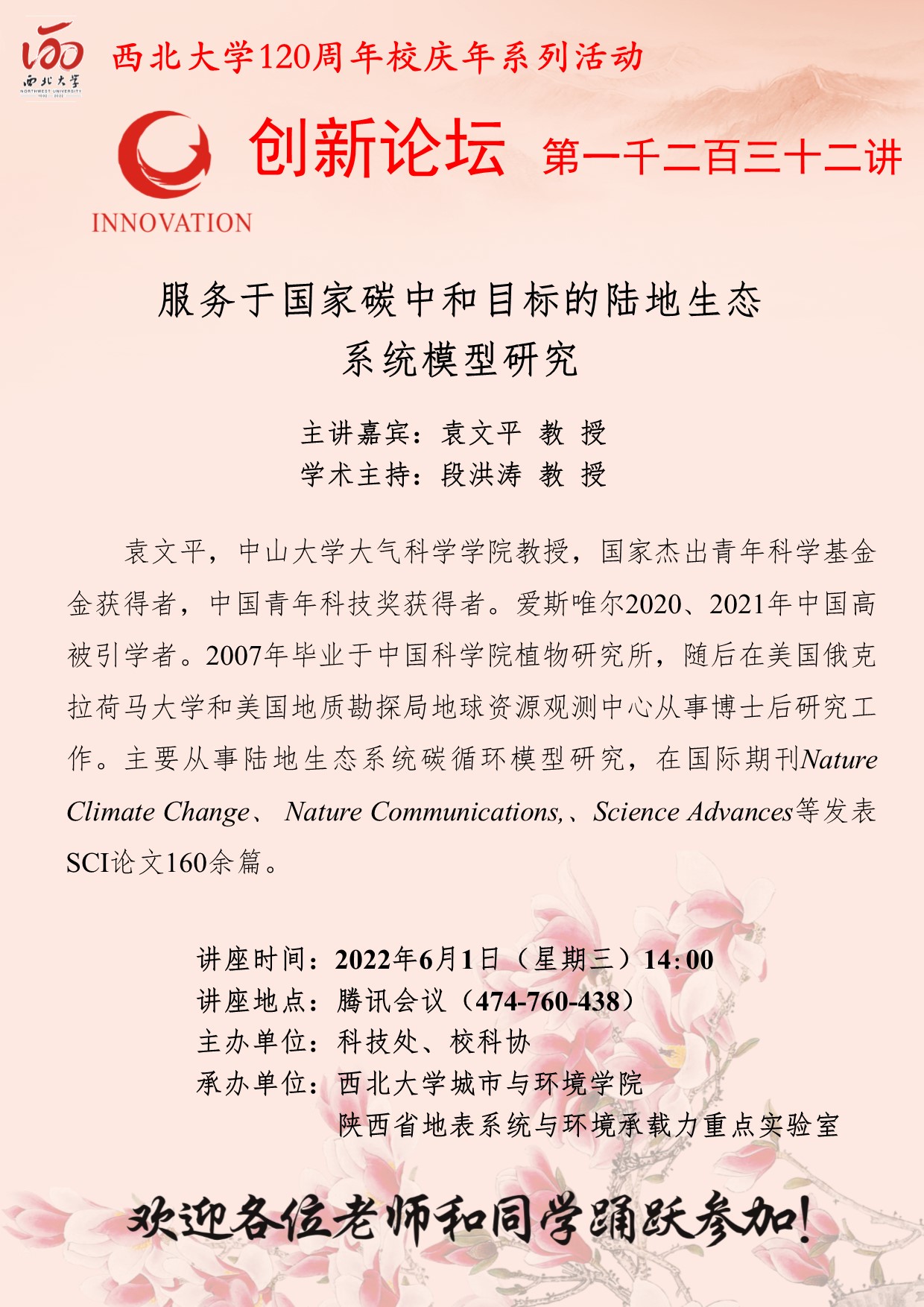 欧冠官方网站创新论坛第一千二百三十二讲暨120周年校庆年系列活动:服务于国家碳中和目标的陆地生态系统模型研究