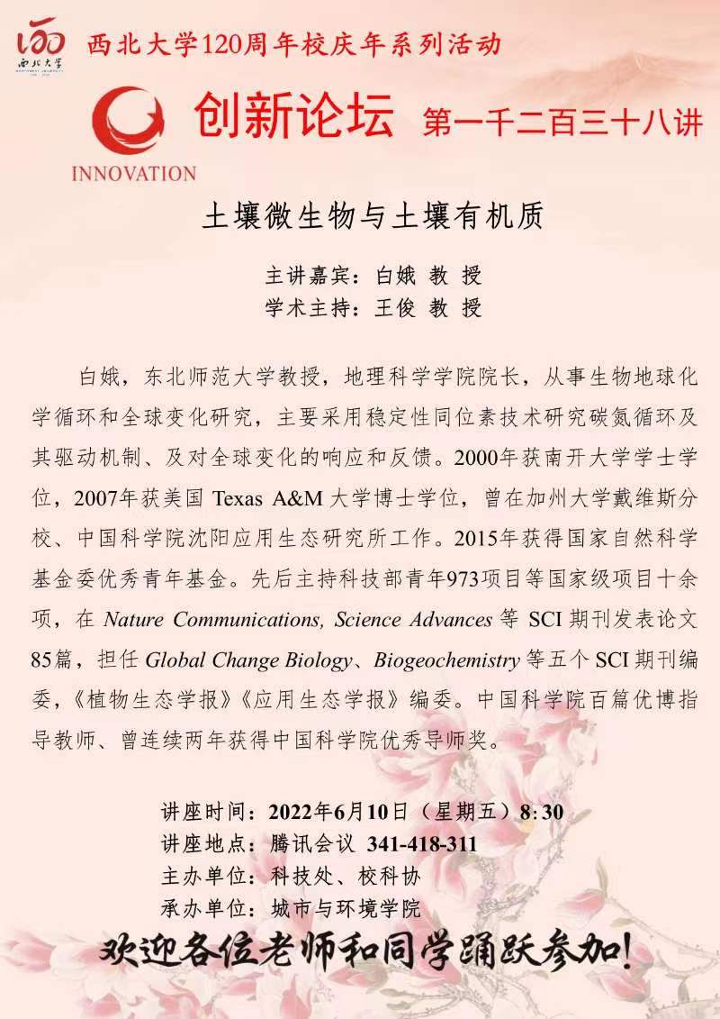 欧冠官方网站创新论坛第一千二百三十八讲暨120周年校庆年系列活动:土壤微生物与土壤有机质