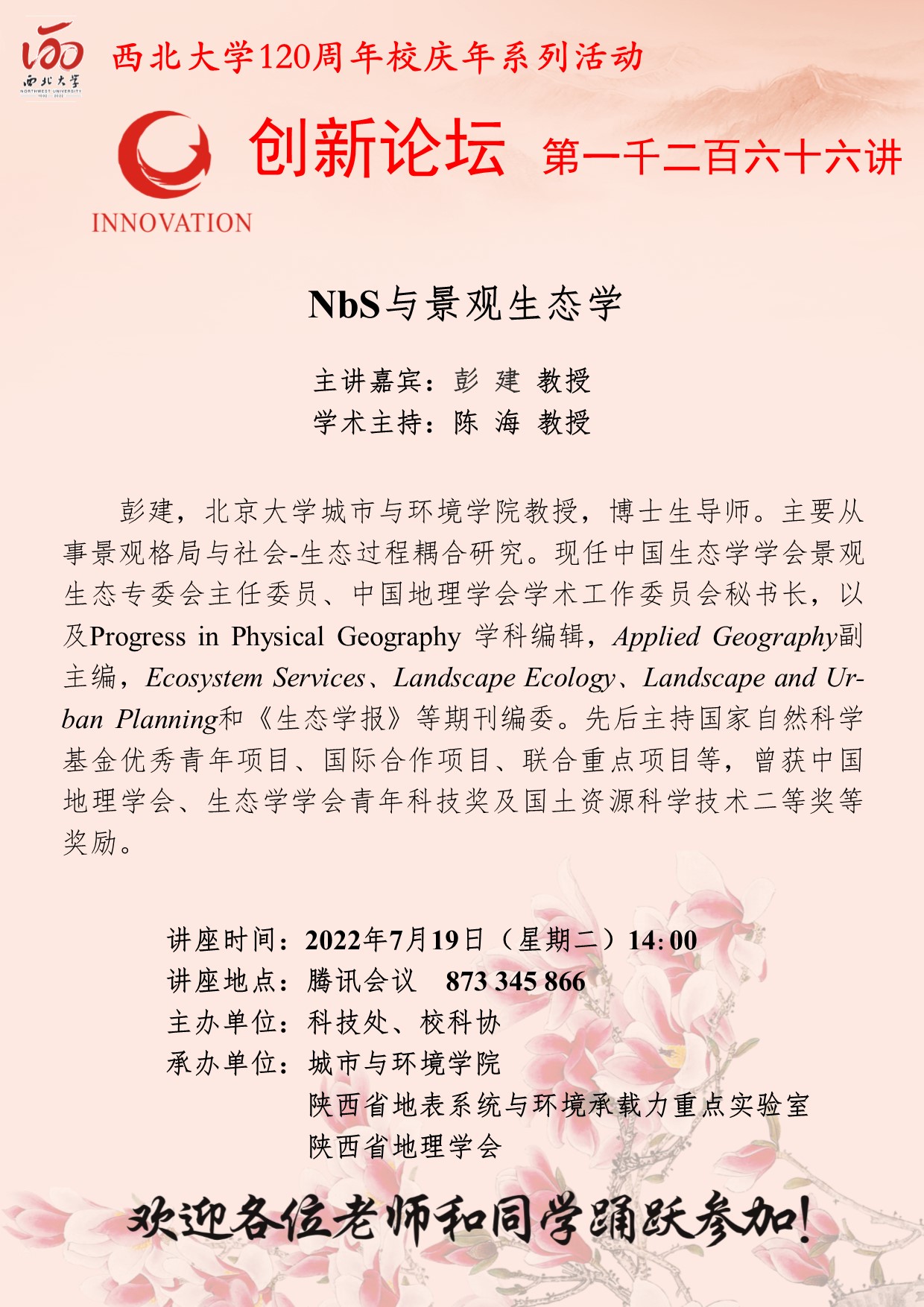 欧冠官方网站创新论坛第一千二百六十六讲暨120周年校庆年系列活动:NbS与景观生态学