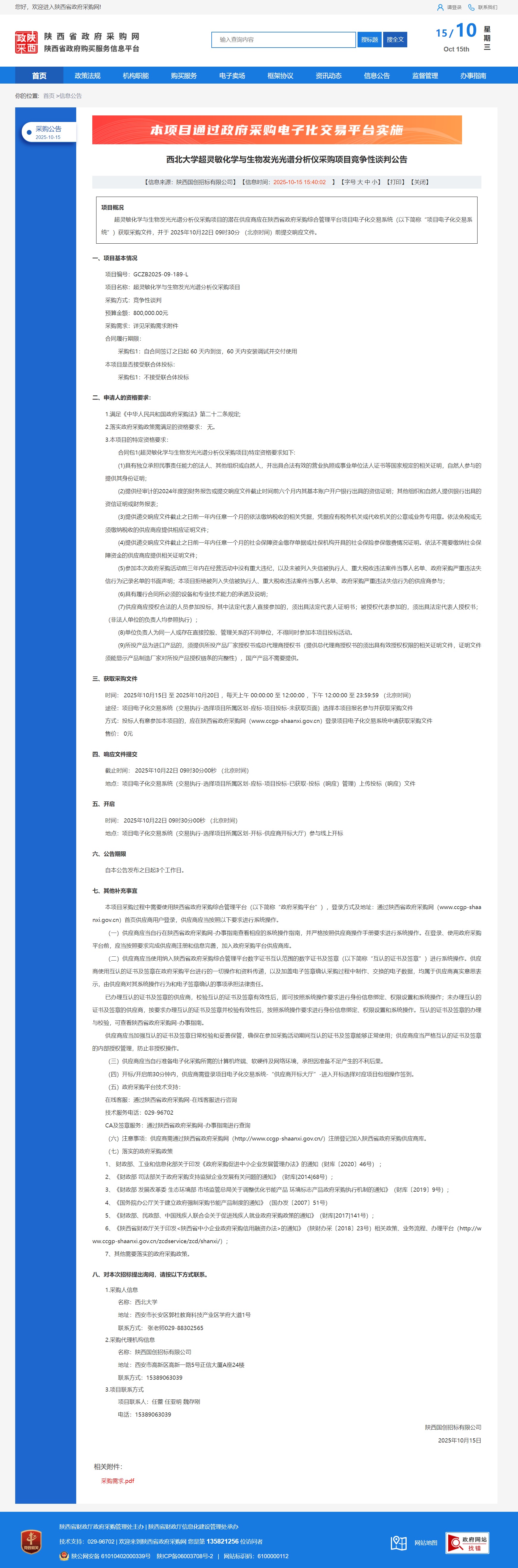 欧冠官方网站超灵敏化学与生物发光光谱分析仪采购项目竞争性谈判公告