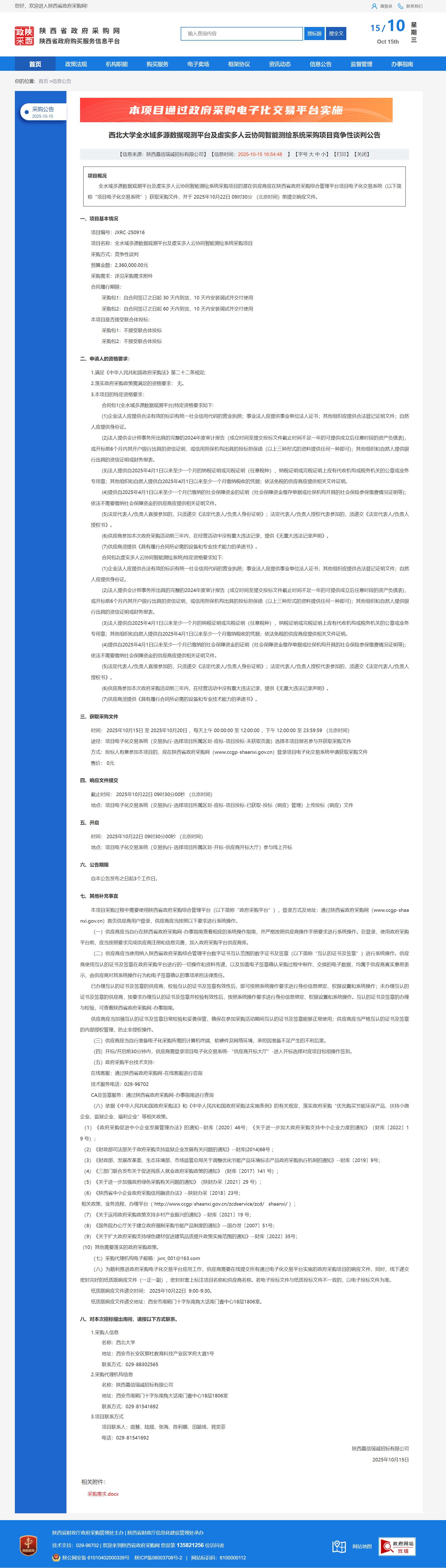 欧冠官方网站全水域多源数据观测平台及虚实多人云协同智能测绘系统采购项目竞争性谈判公告